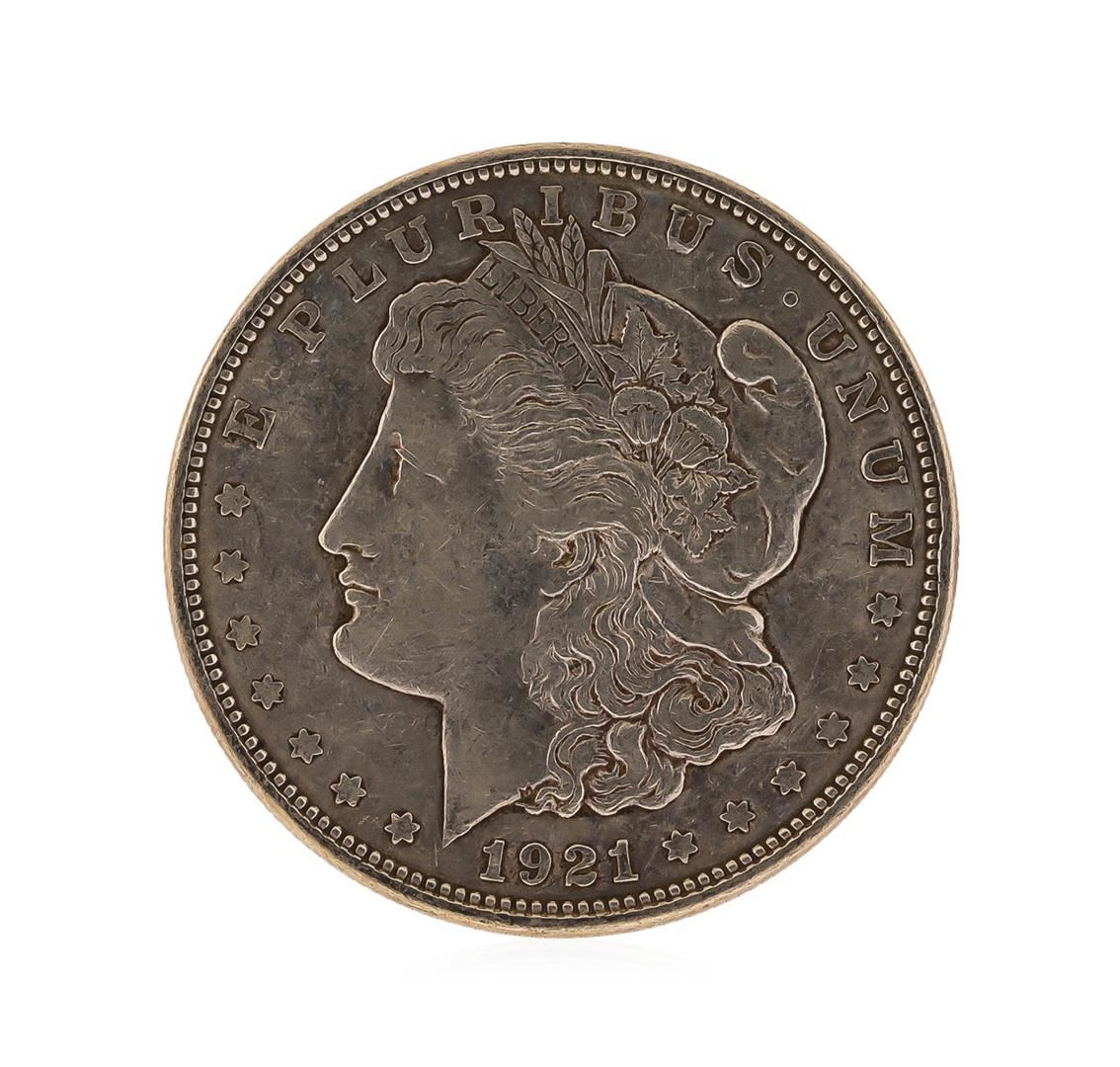 One 1921-D Morgan Silver Dollar.