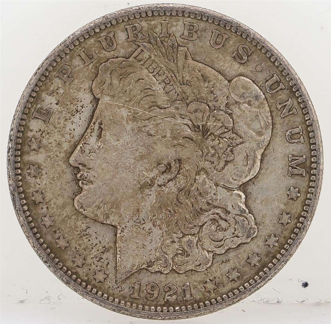 One 1921-D Morgan Silver Dollar.