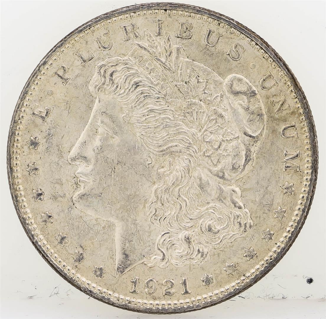 One 1921-D Morgan Silver Dollar.