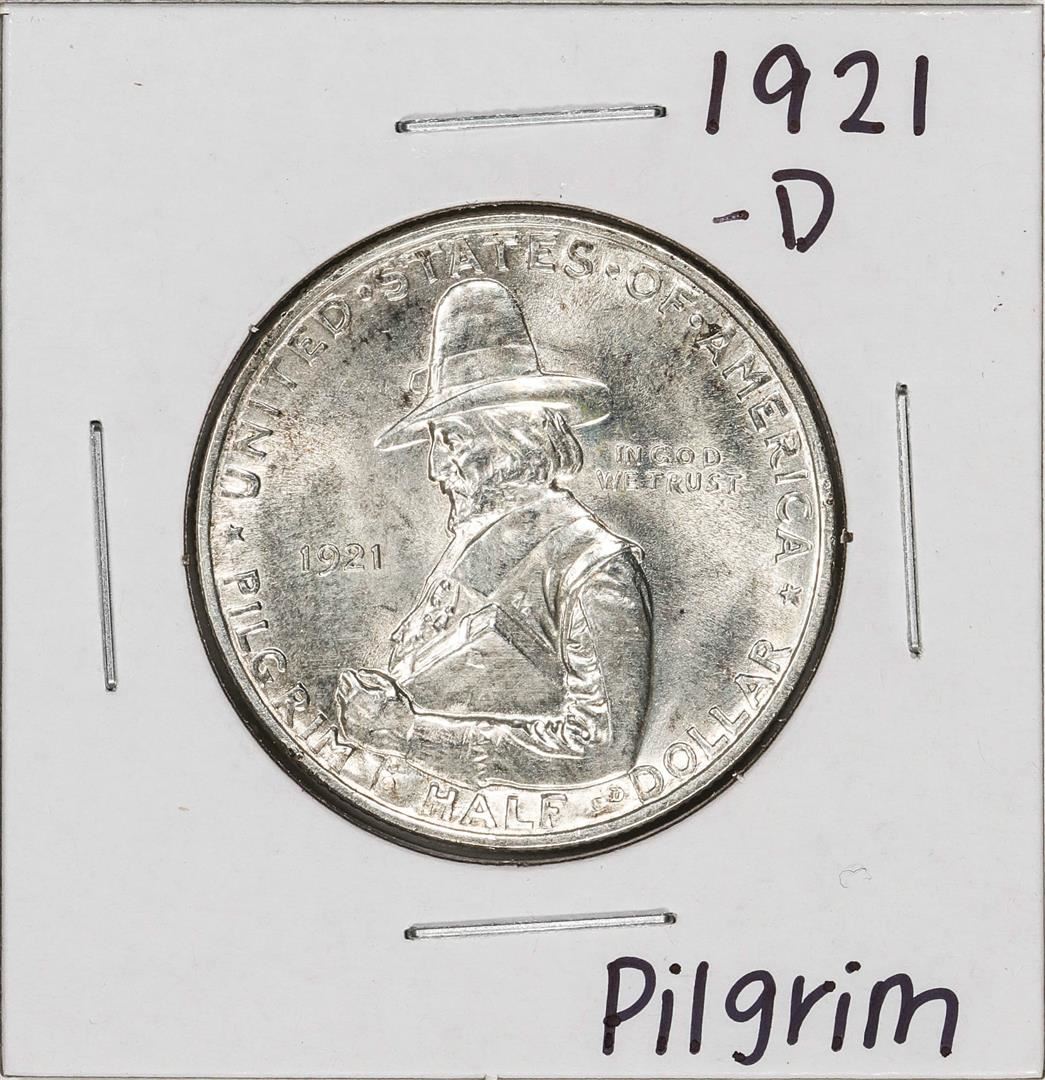 One 1921-D Pilgrim Tercentenary Commemorative Half Dollar Coin.