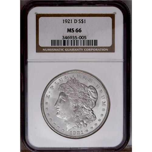 1921-D S$1 MS66 NGC. This brilliant and mildly proofli 1921-D[img border='0' src='http://www.heritag