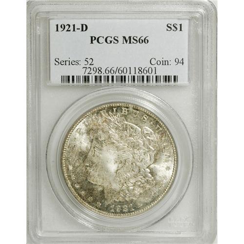 1921-D S$1 MS66 PCGS. The mottled green, reddish-brown