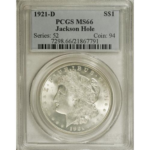 <B>1921-D S$1 MS66 PCGS.</B></I> Ex: Jackson Hole. Well struck with exceedingly frosty snow-white surfaces that only show a couple of faint luster grazes, in the obverse fields, and a single small mark, on the lower reverse, just above the olive leaves.<BR><I>From The Jackson Hole Collection.</B></I><BR><BR><b>Shipping:</b> Coins & Currency (<a target="_blank" href="http://www.heritageauctions.com/common/shipping.php">view shipping information</a>)
