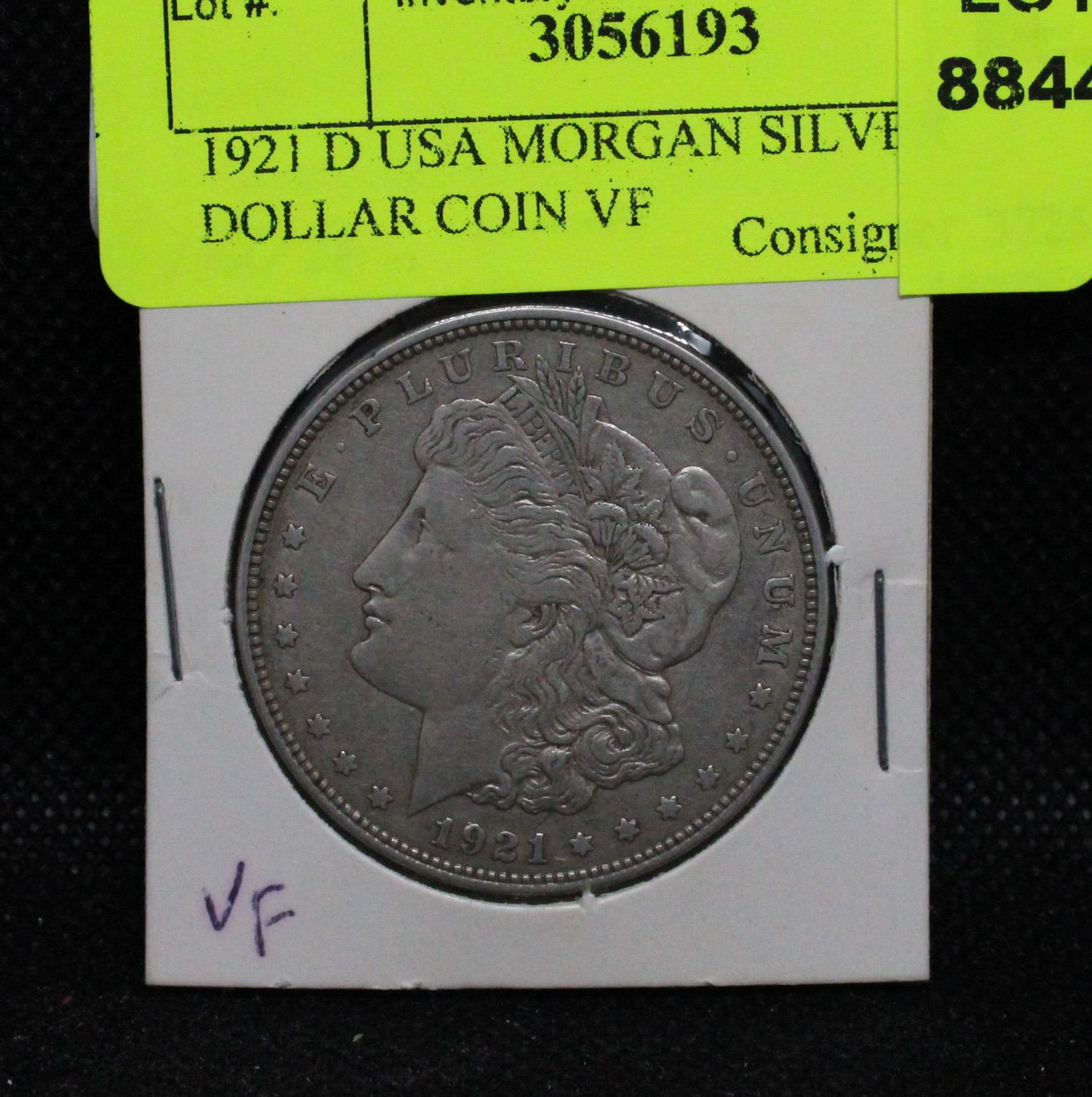 1921 D USA MORGAN SILVER DOLLAR COIN VF