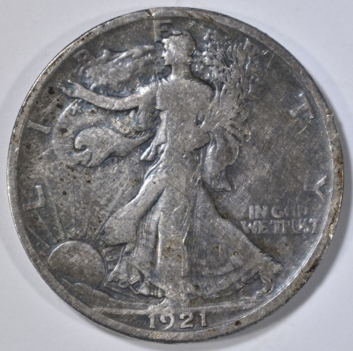 1921-D WALKING LIBERTY HALF DOLLAR, FINE scatches