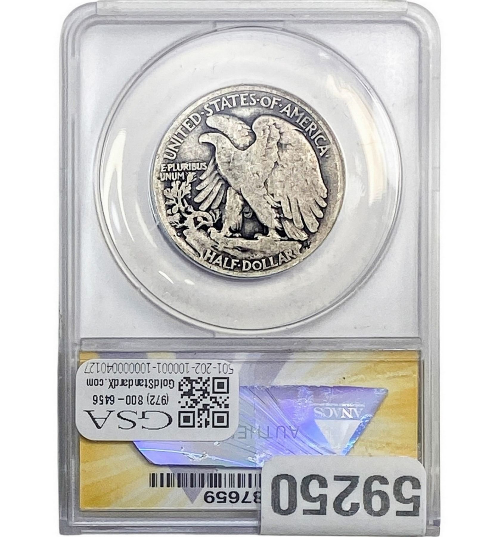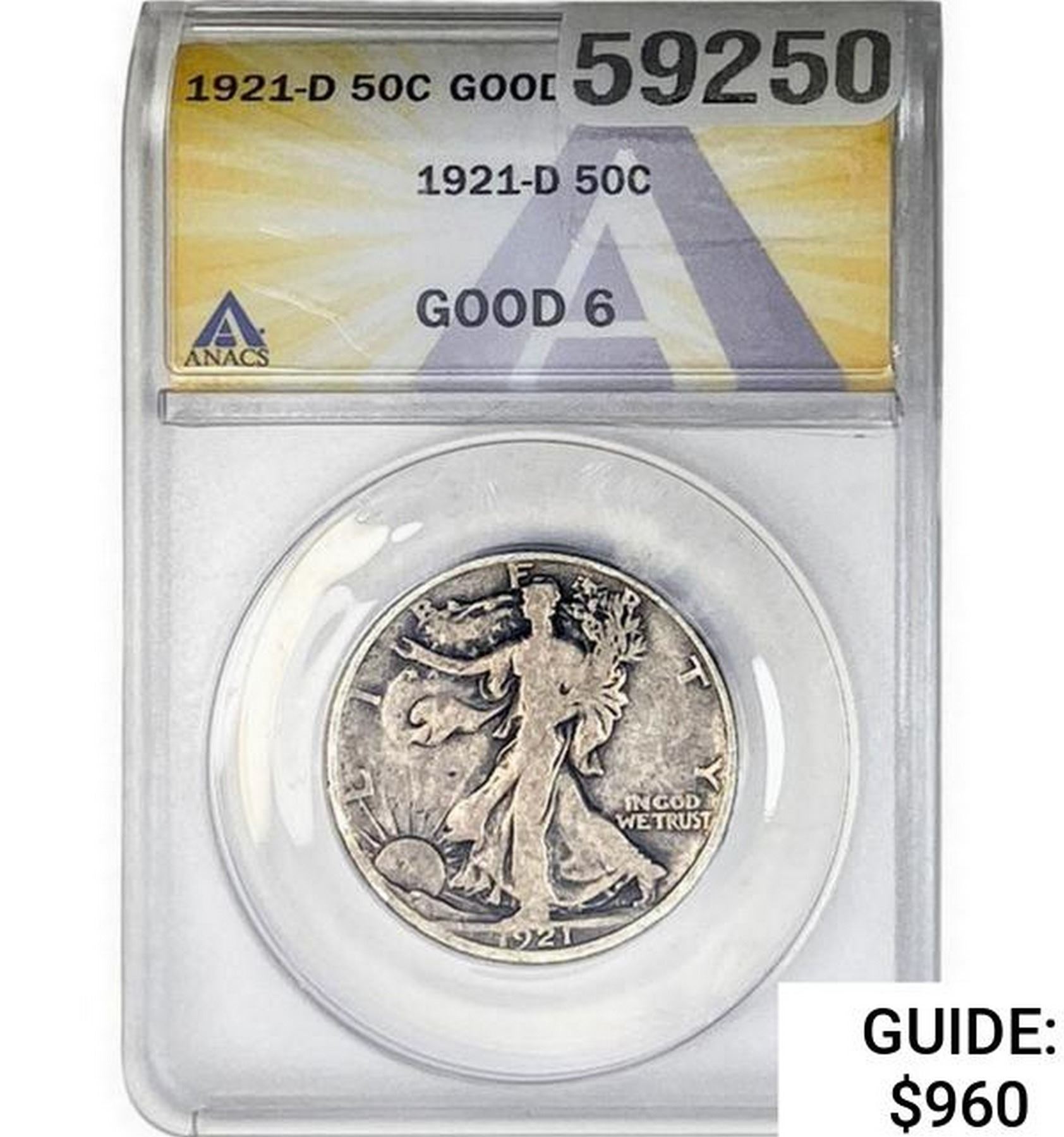 1921-D Walking Liberty Half Dollar ANACS GOOD6