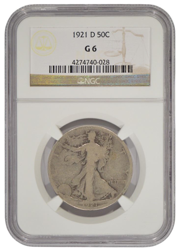 One 1921-D Walking Liberty Half Dollar Coin NGC G6.
