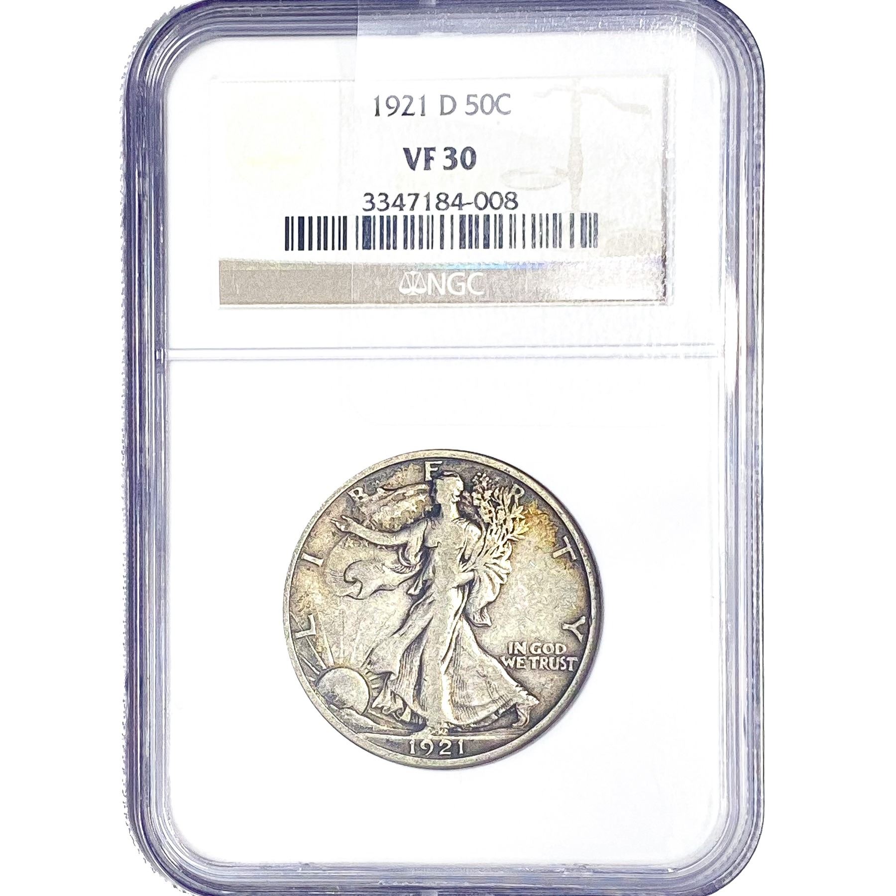 1921-D Walking Liberty Half Dollar NGC VF30