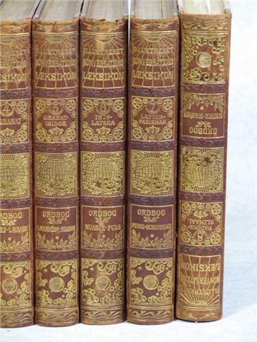 C. 1921 Danish Leather Decorator Books. 8 Volume Leather bound with gold embossed covers.