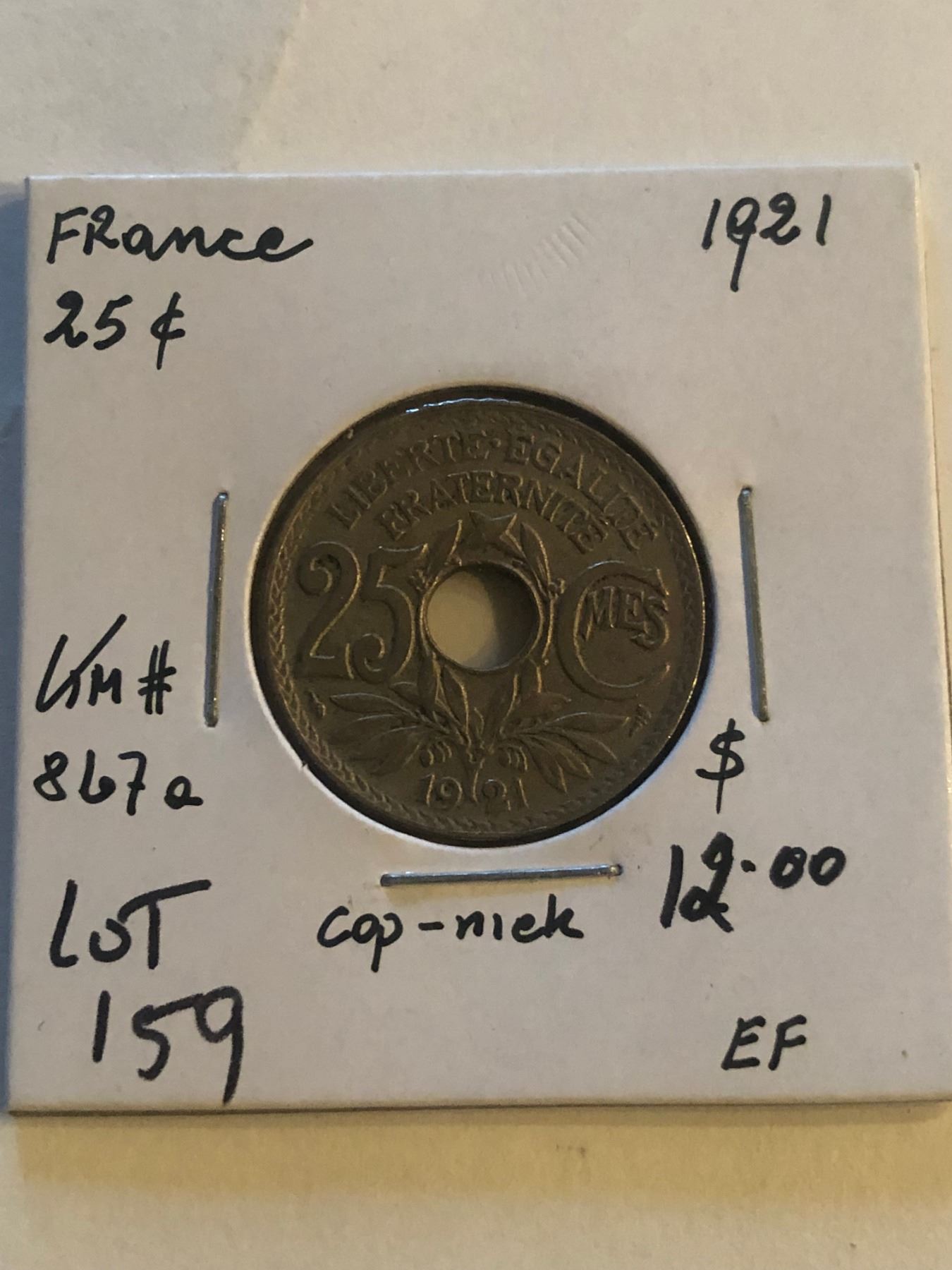 1921 France 25 Cents in Extra Fine Grade KM 867A