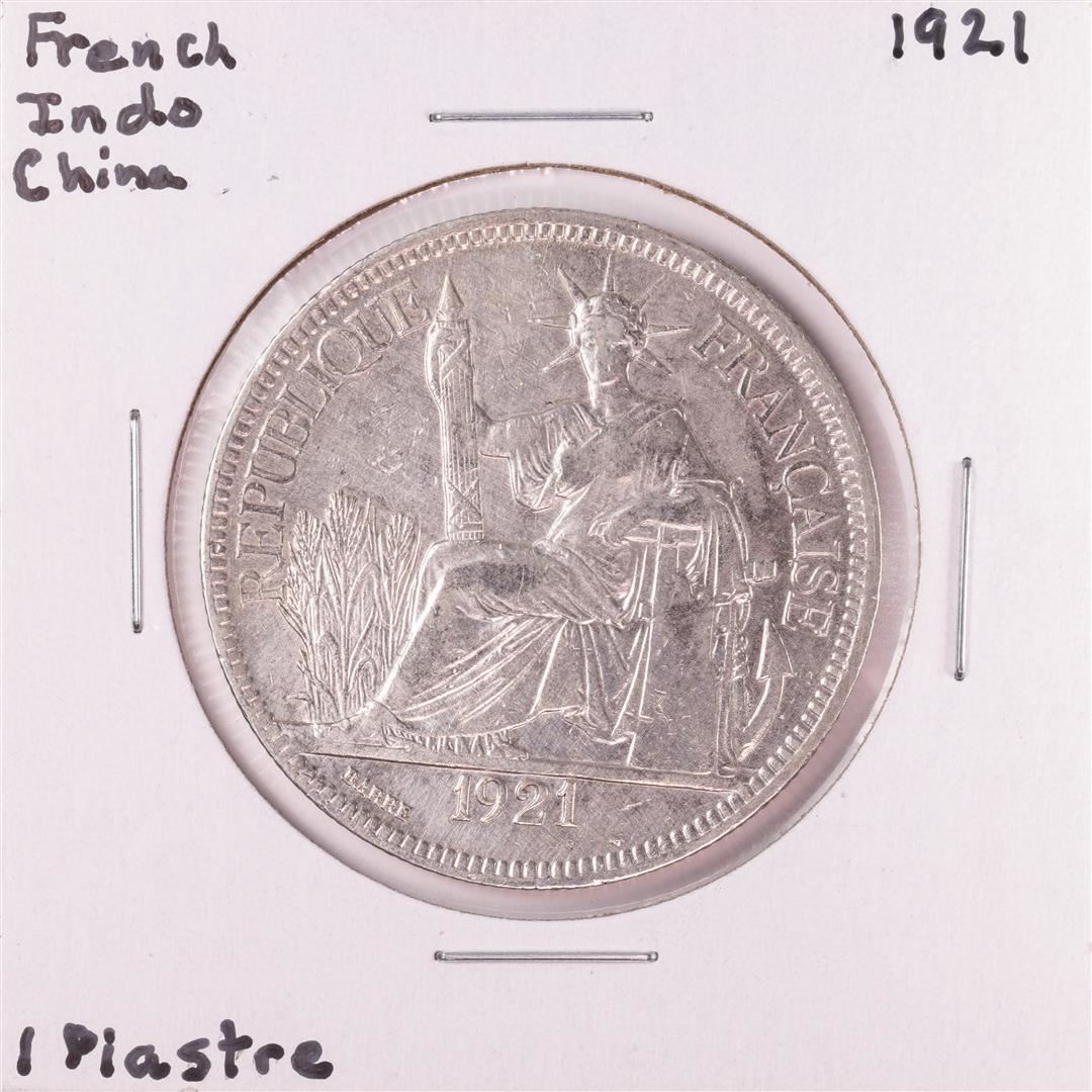 One 1921 French Indo China 1 Piastre Silver Coin.