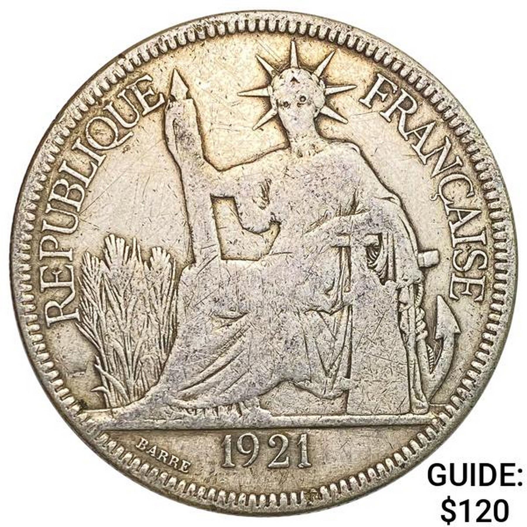1921 French Indochina 1 Piastre ABOUT UNCIRCULATED