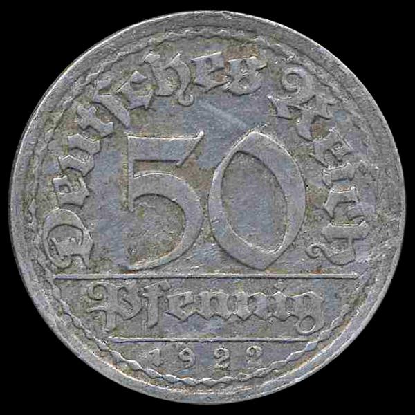 1921 Germany 50pfg MS63 RARE Blundered Mintmark ERROR (COI-8109)