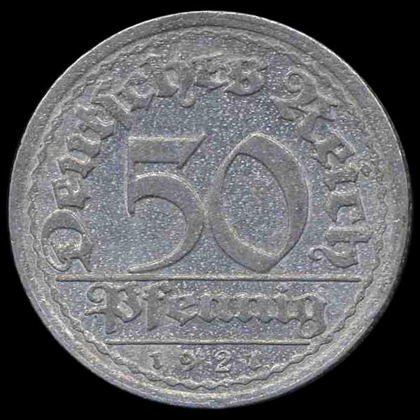 1921 Germany 50pfg MS64 RARE Blundered Mintmark ERROR (COI-8107)