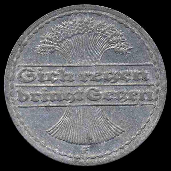 1921 Germany 50pfg MS64 RARE Blundered Mintmark ERROR (COI-8108)