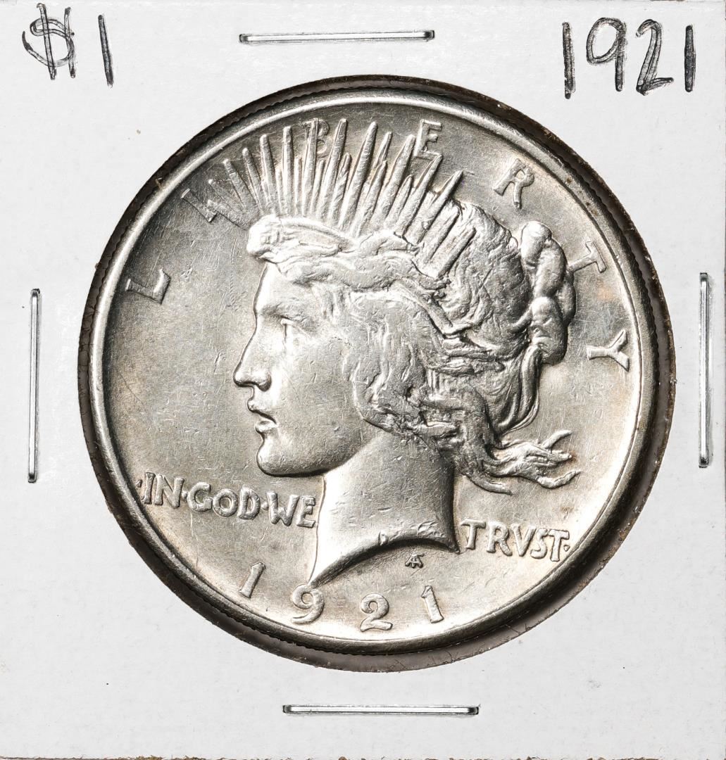 One 1921 High Relief $1 Peace Silver Dollar Coin.