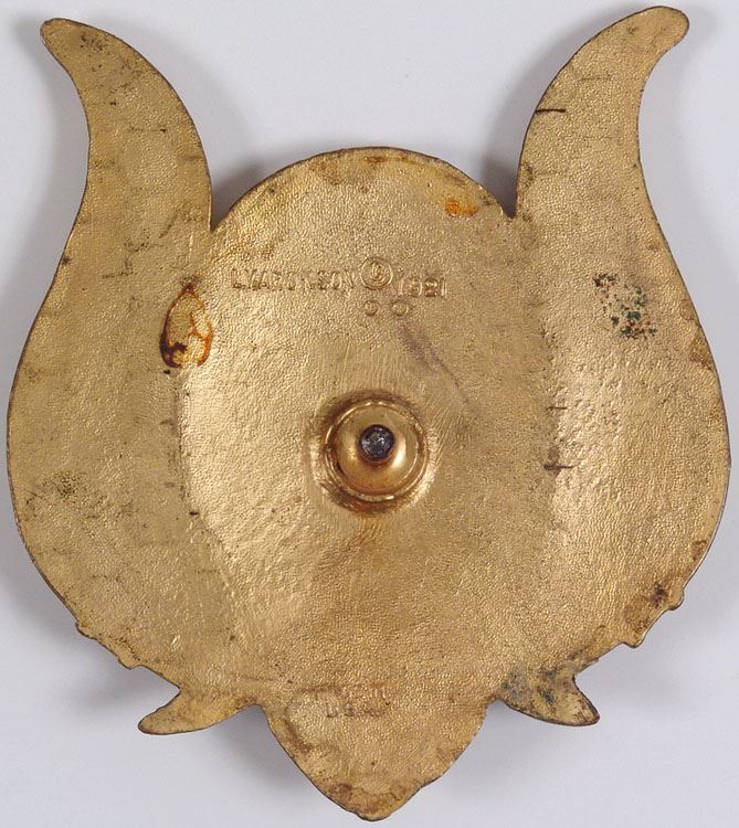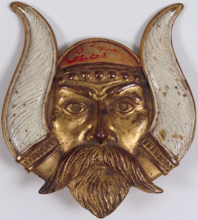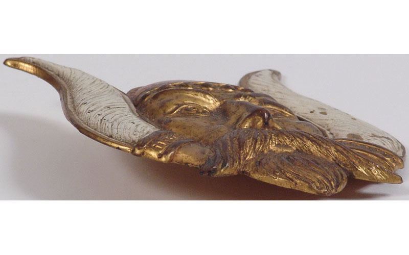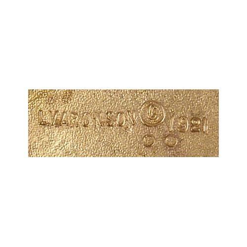 This is an antique 1921 LV Aronson piece depicting a Viking warrior or Norse god. Egyptian Revival. Fraternal/Masonic? Very rare. Detailed cast - very heavy solid metal (weighs more than 10 ounces). Marked on back "LV Aronson" and "1921" as well as "Made in USA." From a personal collection - we never have seen this Aronson figure before. Some kind of emblem - maybe was on a bookend. We've seen a similar LV Aronson Shriner design that was a hood ornament/radiator cap. SIZE: Approx. 4" wide and 4" tall. Louis Vincent Aronson was an American inventor, industrialist and philanthropist who is best remembered as the inventor of Ronson lighters. His company also produced a variety of high quality lamps, book ends, statues and other decorative items, prized today for their detail in the collector marketplace.