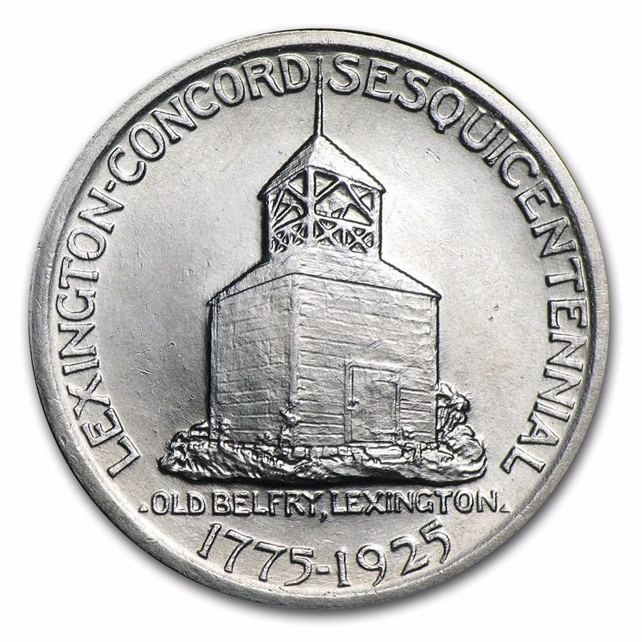 One 1921 Lexington Concord Sesquicentennial Silver Half Dollar Coin.