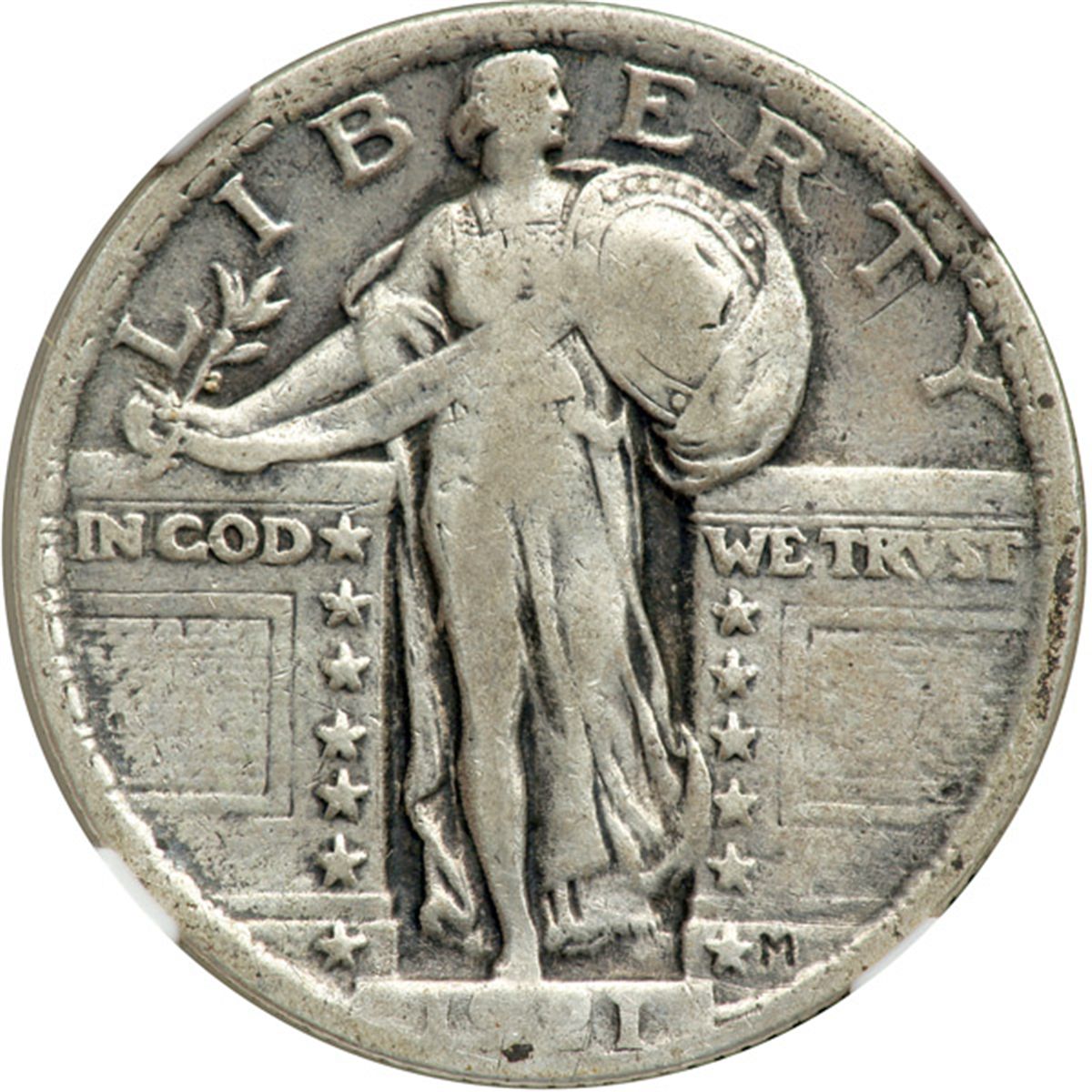 1921 Liberty Standing Quarter Dollar. NGC graded VF-20. Only 10,450 examples are estimated to have survived.