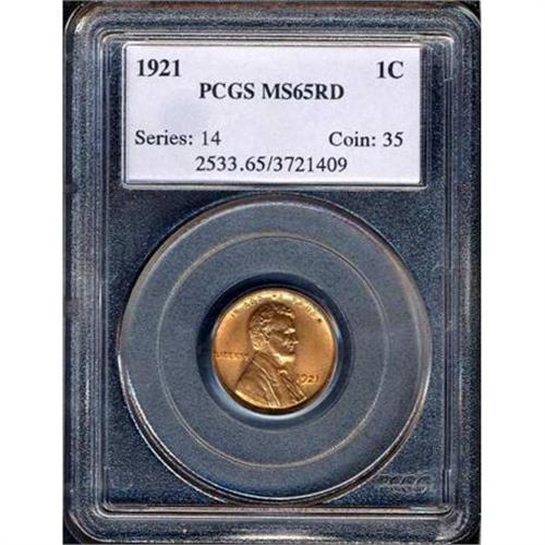 <b>1921 Lincoln Cent. PCGS graded MS65 R.</b> Blazing golden red with intense luster, sharp details, and delightful eye appeal. Typical for this issue, we see and are happy to report that it is nicely struck, and unlike those which have the faintest touch of weakness at the top of the O in ONE, this exemplary coin is bold <b>(PCGS # 2533)</b>