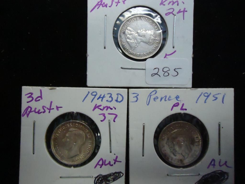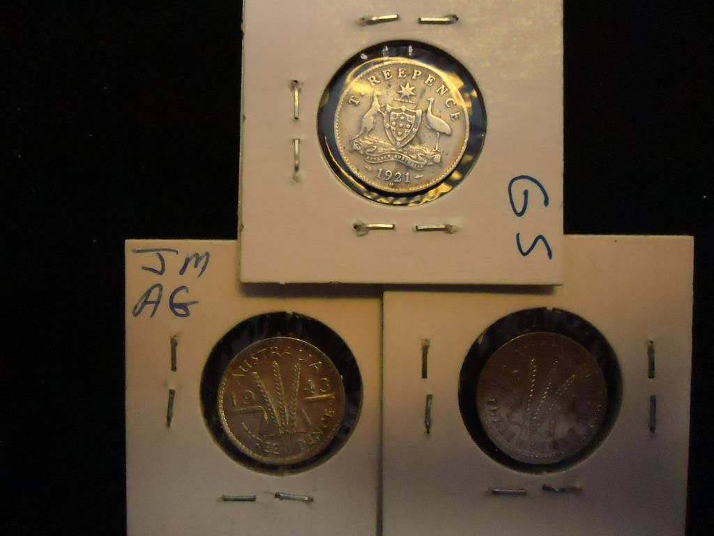 1921-M,43-D & 51 AUSTRALIAN SILVER 3 PENCE
