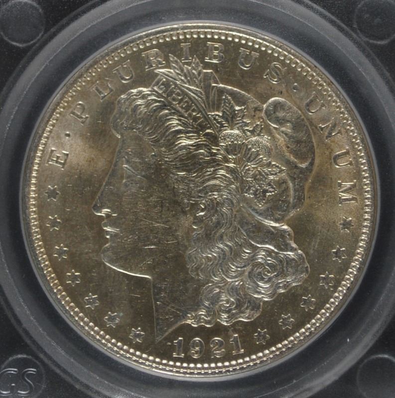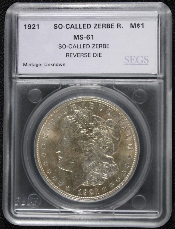 1921 MORGAN DOLLAR SEGS GRADED "ZERBE" REVERSE DIE, CH BU, VERY RARE