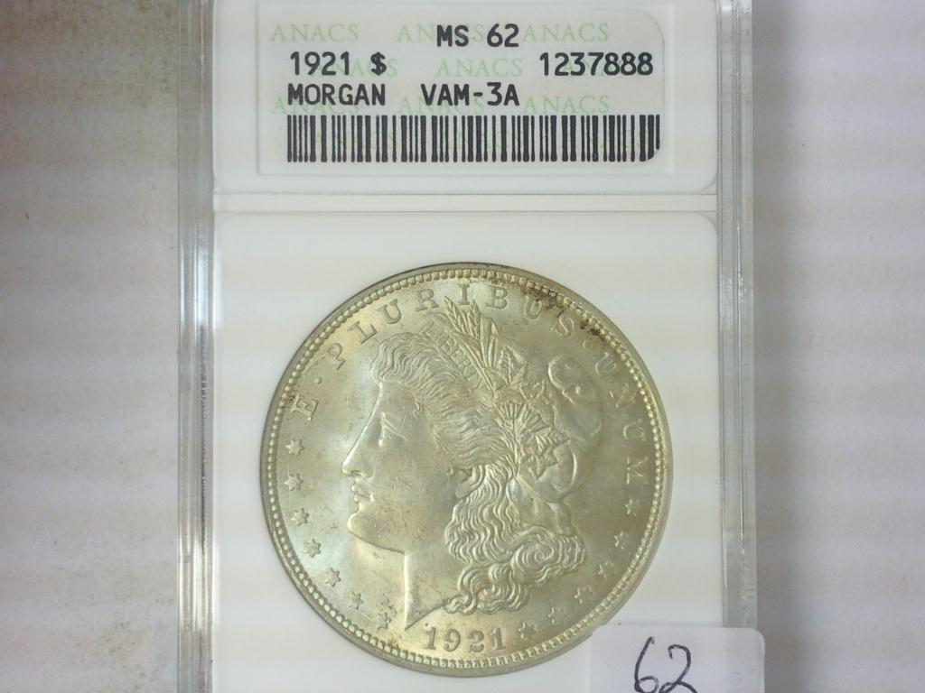 1921 MORGAN SILVER DOLLAR ANACS MS62 VAM-3A
