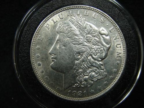 1921 U.S. MORGAN SILVER DOLLAR. Coin is in circular case.