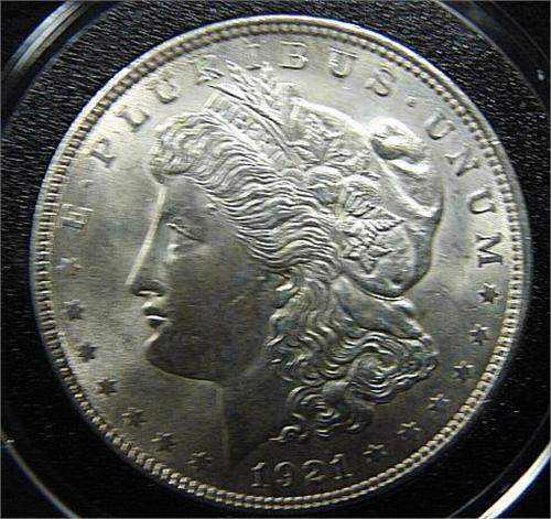 1921 U.S. MORGAN SILVER DOLLAR. Coin is in circular case.