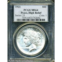 <B>1921<img border='0' src='http://www.heritagecoins.com/images/star.gif' width=10 height=10>$1 MS64 PCGS.</B></I> Lustrous and brilliant, with sharply struck devices. Lot:10673