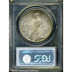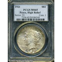 <B>1921<img border='0' src='http://www.heritagecoins.com/images/star.gif' width=10 height=10>$1 MS65 PCGS.</B></I> Light blue, gray, and violet colors interplay over lustrous surfaces. Liberty's hair over the ear is soft. Lot:10681