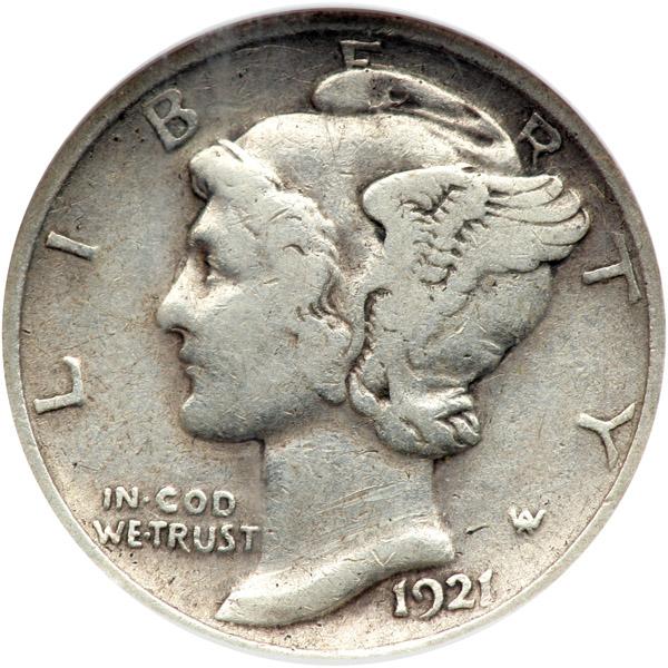 1921 Mercury Dime. NGC graded VF-20. Popular Key Date.