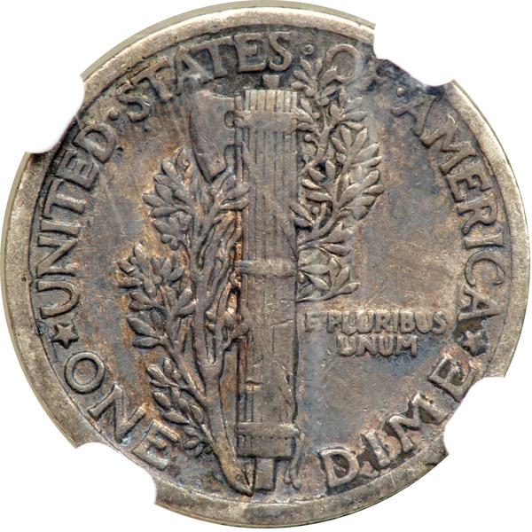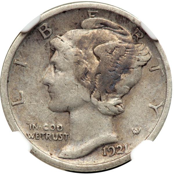 1921 Mercury Dime. NGC graded XF Details, environmental damage. Not nearly as bad as this description might sound.