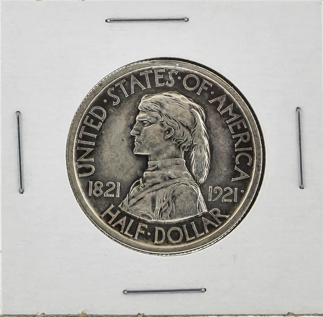 One 1921 Missouri Centennial Commemorative Half Dollar Coin.