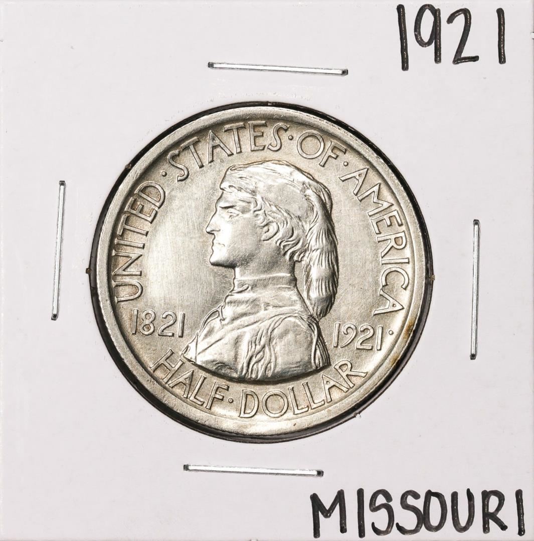 One 1921 Missouri Centennial Commemorative Half Dollar Coin.