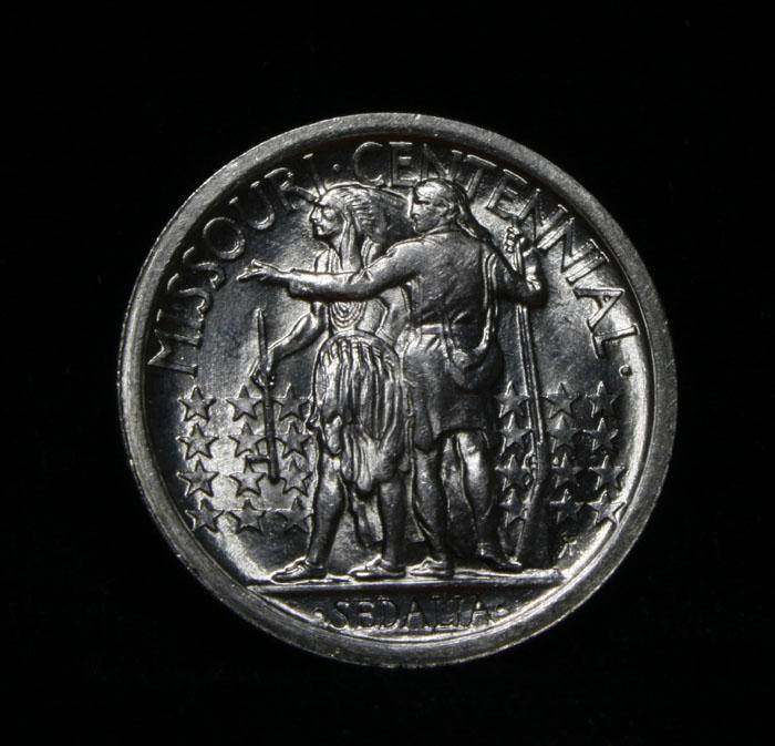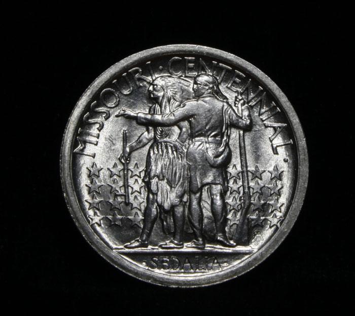 This is a Very Nice example of a harder Early Commemorative. Near Blast White example. Great Luster, nice strike. The Obverse Depicts Daniel Boon, even though he was best known for his exploits in Kentucky, since he made his home in Missouri for the last quarter of his life. When examining a Missouri Centennial for wear, on the obverse, friction first shows on Boone's cheek and on the hair behind his ear and shoulder. On the reverse, rub is first evident on the arm of the frontiersman. Coin World's Coin Values lists ms64 at $1300 and The Wholesale Greysheet lists ms64 at $975. Estimated Value $1100