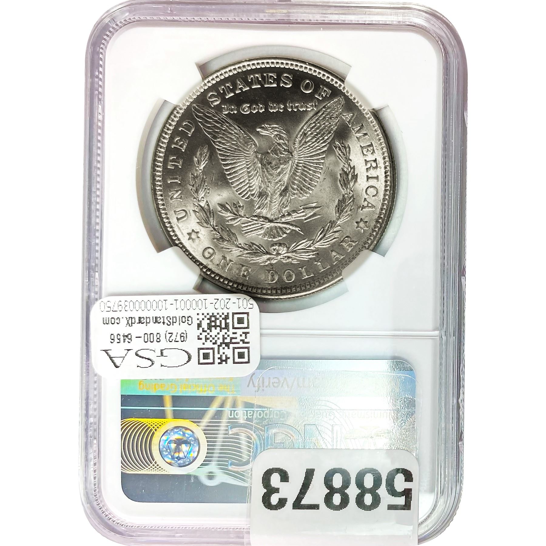 e. Coins sold referencing a third-party grading service are sold “AS IS” without any express or implied warranty, except for a guarantee by GSA that they are genuine. Removal or alteration of the holder, voids all of Bidder’s claims concerning that Product. Certain warranties may be available from the grading services and Bidders are referred to them for further details: Numismatic Guaranty Corporation (NGC), PO Box 4776, Sarasota, FL 34230, www.ngccoin.com/services/writtenguarantee.asp; Professional Coin Grading Services (PCGS), PO Box 9458, Newport Beach, CA 92658, www.pcgs.com/guarantee.html; ANACS, 6555 S. Kenton St., Ste. 303, Englewood, CO 80111; and Independent Coin Grading Co. (ICG), 7901 East Bellview, Ave., Suite 50, Englewood, CO 80111.