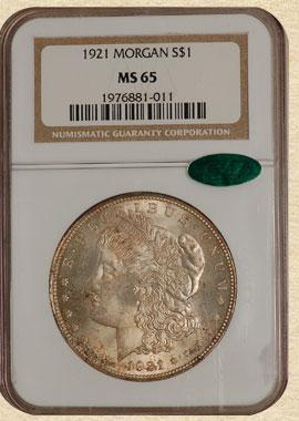 1921 Morgan $ MS65 NGC CAC 3227-59
