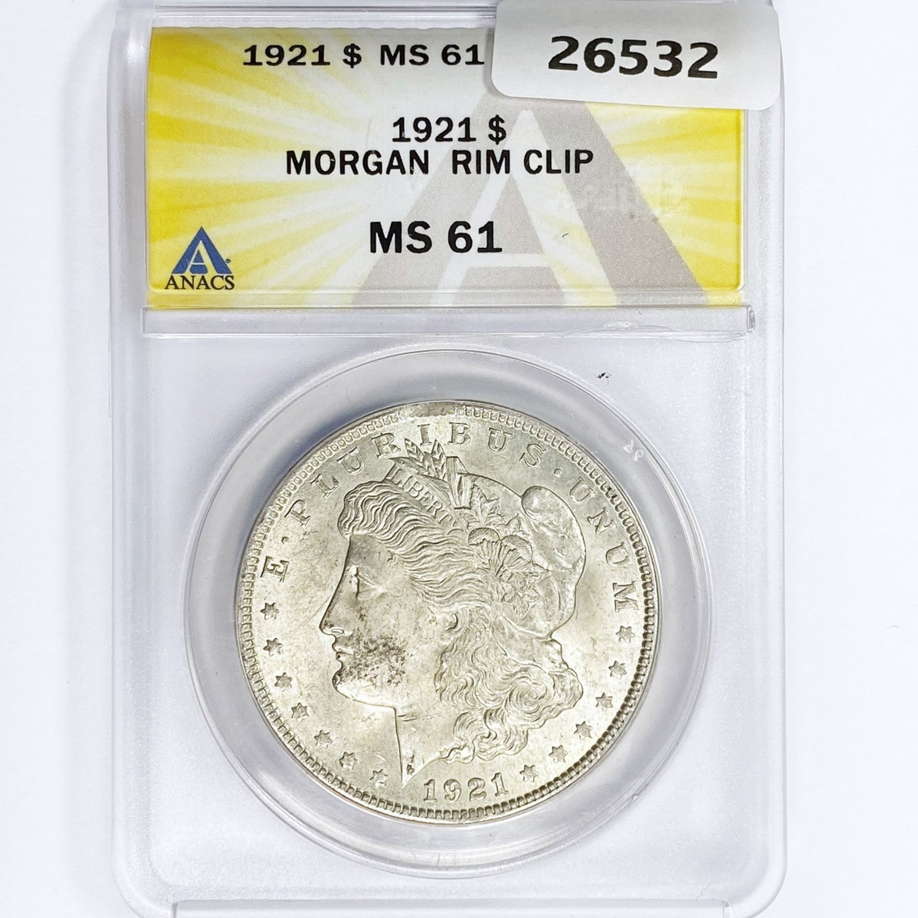 1921 Morgan Silver Dollar ANACS MS61 Rim Clip
