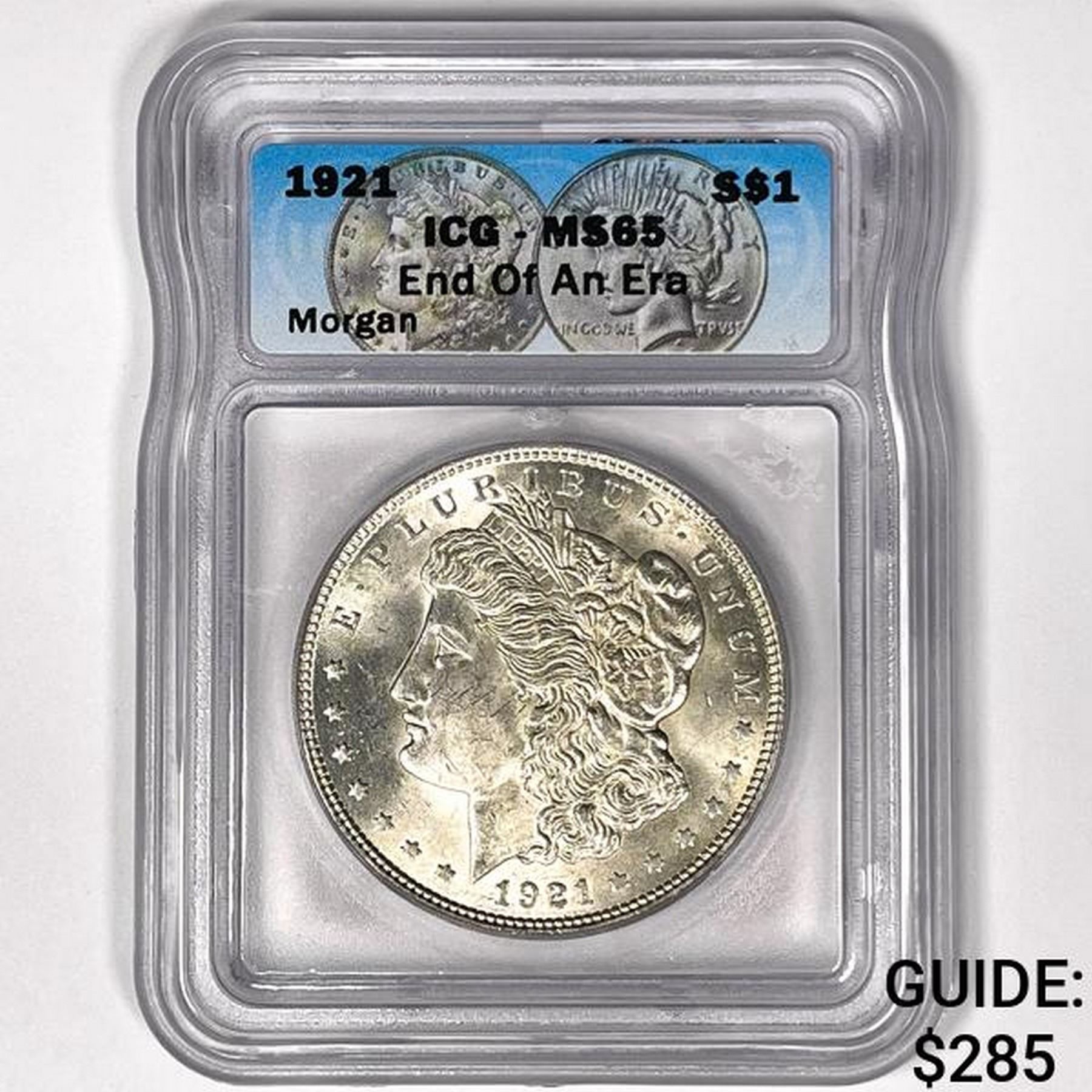 1921 Morgan Silver Dollar ICG- MS65 End of an Era