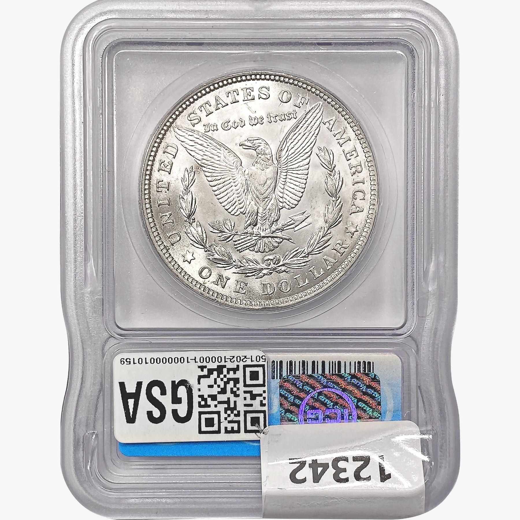 COINS AND CURRENCY LISTED IN GSA’S CATALOG AS GRADED AND ENCAPSULATED BY PCGS, NGC, ANACS, ICG, PCGS CURRENCY, PMG, PCGS BANKNOTE GRADING, CMC OR ANY OTHER THIRD-PARTY GRADING SERVICE ARE LIKEWISE SOLD “AS-IS” EXCEPT AS EXPRESSLY SET FORTH HEREIN. ALL THIRD-PARTY GRADING SERVICE GUARANTEES, INCLUDING AUTHENTICITY, ARE THE SOLE RESPONSIBILITY OF THE THIRD-PARTY GRADING SERVICE AND NOT WARRANTIES OR GUARANTEES OF GSA. BIDDERS SHOULD CONTACT THESE THIRD-PARTY GRADING SERVICES DIRECTLY WITH RESPECT TO ANY CLAIMS OR QUESTIONS THEY MAY HAVE CONCERNING THEIR GUARANTEES AND WARRANTIES. BIDDERS ACKNOWLEDGE AND AGREE THAT AUCTIONEER IS NOT BOUND BY OR LIABLE FOR ANY OPINION OR CERTIFICATION BY ANY THIRD-PARTY GRADING SERVICE. REMOVAL OF A PRODUCT FROM ITS PROTECTIVE CASING OR HOLDER OR ALTERATION OF ANY COIN HOLDER WAIVES ALL RIGHTS CONCERNING THE PRODUCT CONTAINED THEREIN.