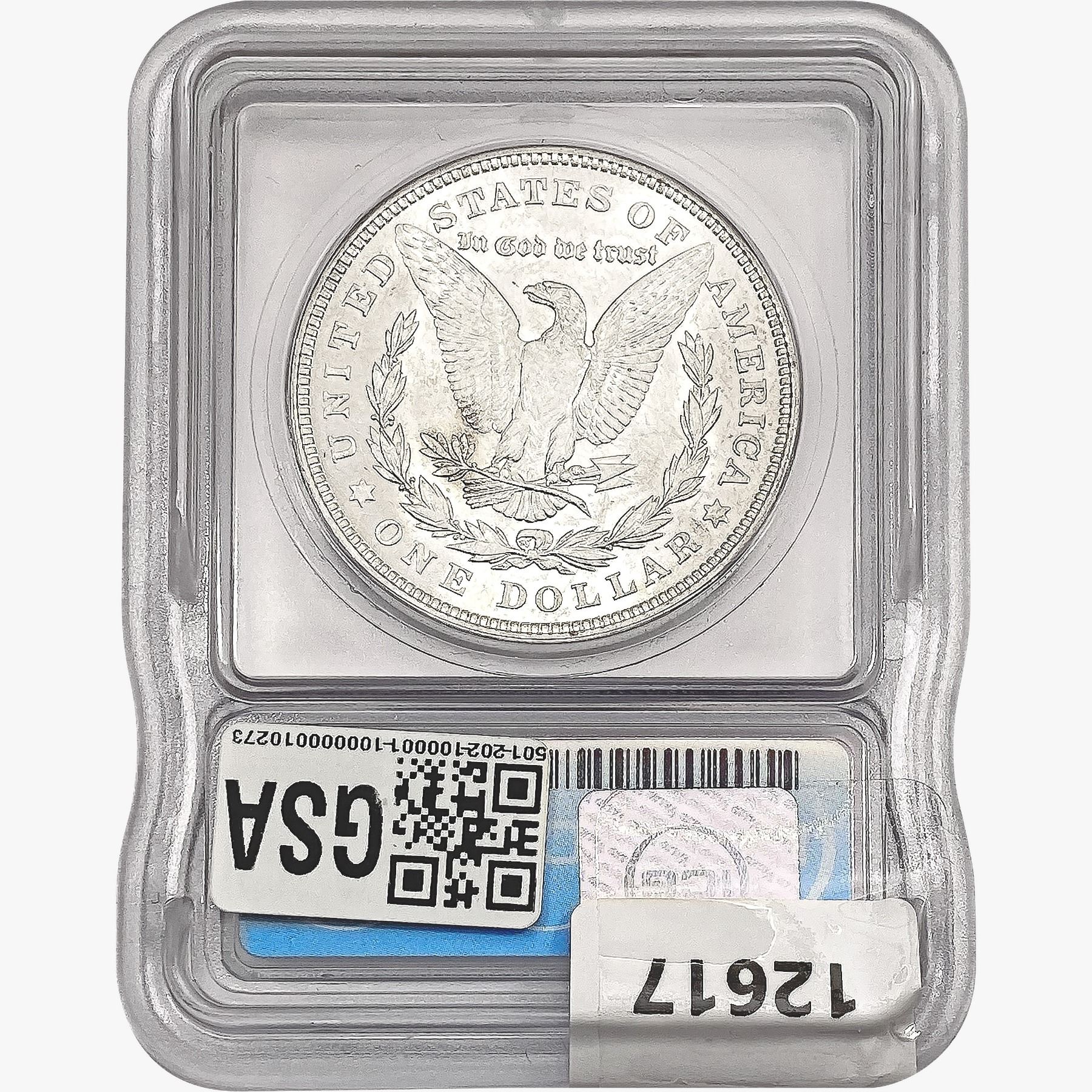 COINS AND CURRENCY LISTED IN GSA’S CATALOG AS GRADED AND ENCAPSULATED BY PCGS, NGC, ANACS, ICG, PCGS CURRENCY, PMG, PCGS BANKNOTE GRADING, CMC OR ANY OTHER THIRD-PARTY GRADING SERVICE ARE LIKEWISE SOLD “AS-IS” EXCEPT AS EXPRESSLY SET FORTH HEREIN. ALL THIRD-PARTY GRADING SERVICE GUARANTEES, INCLUDING AUTHENTICITY, ARE THE SOLE RESPONSIBILITY OF THE THIRD-PARTY GRADING SERVICE AND NOT WARRANTIES OR GUARANTEES OF GSA. BIDDERS SHOULD CONTACT THESE THIRD-PARTY GRADING SERVICES DIRECTLY WITH RESPECT TO ANY CLAIMS OR QUESTIONS THEY MAY HAVE CONCERNING THEIR GUARANTEES AND WARRANTIES. BIDDERS ACKNOWLEDGE AND AGREE THAT AUCTIONEER IS NOT BOUND BY OR LIABLE FOR ANY OPINION OR CERTIFICATION BY ANY THIRD-PARTY GRADING SERVICE. REMOVAL OF A PRODUCT FROM ITS PROTECTIVE CASING OR HOLDER OR ALTERATION OF ANY COIN HOLDER WAIVES ALL RIGHTS CONCERNING THE PRODUCT CONTAINED THEREIN.