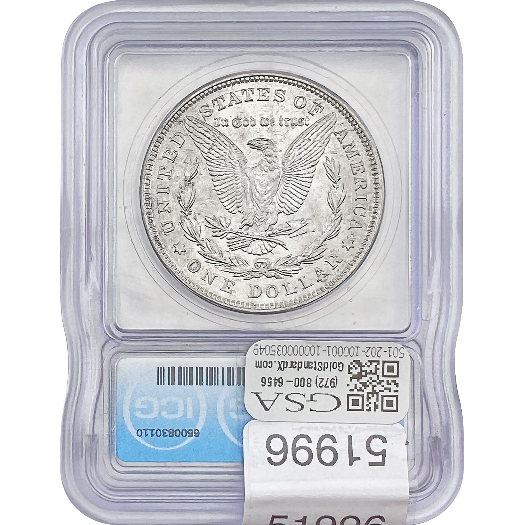 e. Coins sold referencing a third-party grading service are sold “AS IS” without any express or implied warranty, except for a guarantee by GSA that they are genuine. Removal or alteration of the holder, voids all of Bidder’s claims concerning that Product. Certain warranties may be available from the grading services and Bidders are referred to them for further details: Numismatic Guaranty Corporation (NGC), PO Box 4776, Sarasota, FL 34230, www.ngccoin.com/services/writtenguarantee.asp; Professional Coin Grading Services (PCGS), PO Box 9458, Newport Beach, CA 92658, www.pcgs.com/guarantee.html; ANACS, 6555 S. Kenton St., Ste. 303, Englewood, CO 80111; and Independent Coin Grading Co. (ICG), 7901 East Bellview, Ave., Suite 50, Englewood, CO 80111.