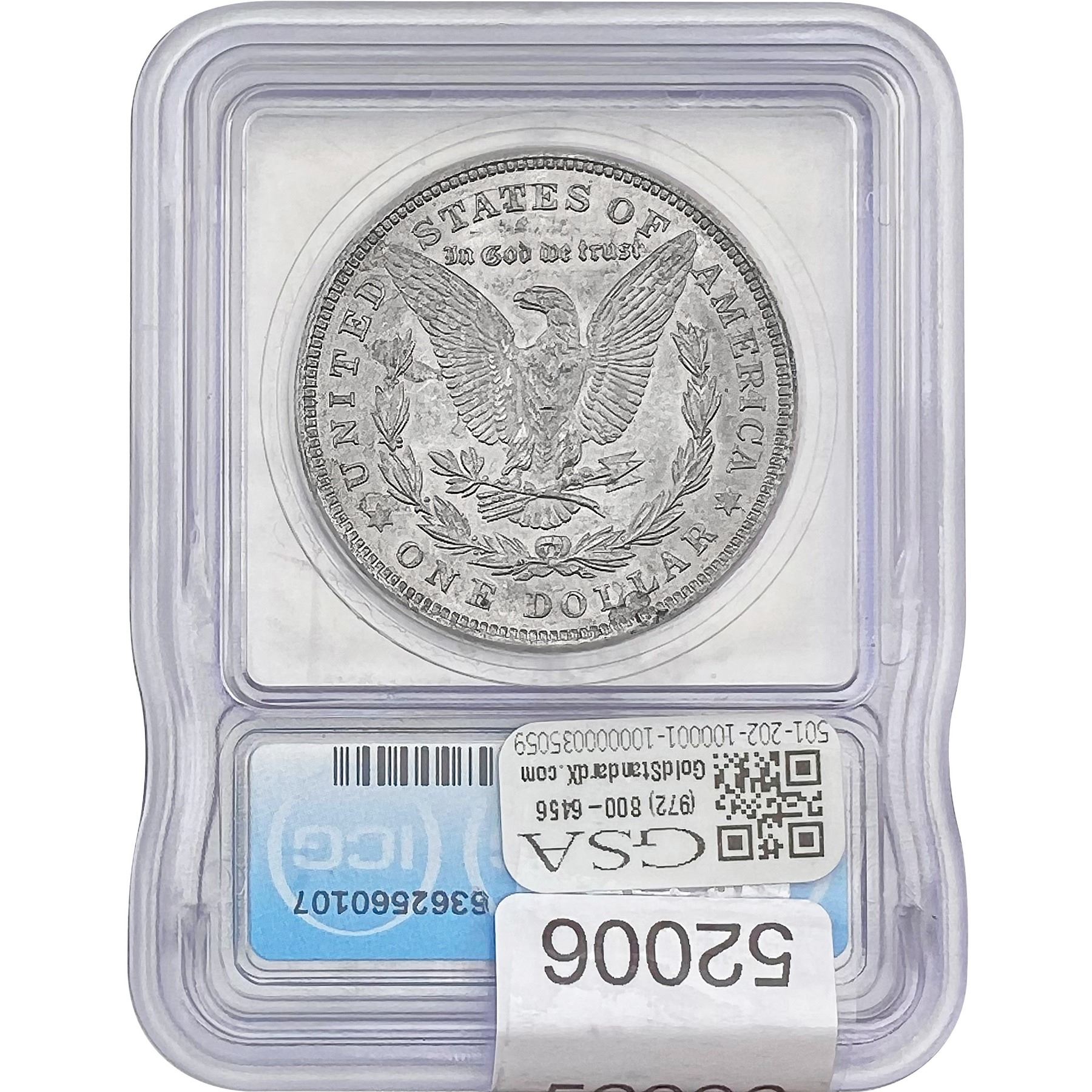 e. Coins sold referencing a third-party grading service are sold “AS IS” without any express or implied warranty, except for a guarantee by GSA that they are genuine. Removal or alteration of the holder, voids all of Bidder’s claims concerning that Product. Certain warranties may be available from the grading services and Bidders are referred to them for further details: Numismatic Guaranty Corporation (NGC), PO Box 4776, Sarasota, FL 34230, www.ngccoin.com/services/writtenguarantee.asp; Professional Coin Grading Services (PCGS), PO Box 9458, Newport Beach, CA 92658, www.pcgs.com/guarantee.html; ANACS, 6555 S. Kenton St., Ste. 303, Englewood, CO 80111; and Independent Coin Grading Co. (ICG), 7901 East Bellview, Ave., Suite 50, Englewood, CO 80111.