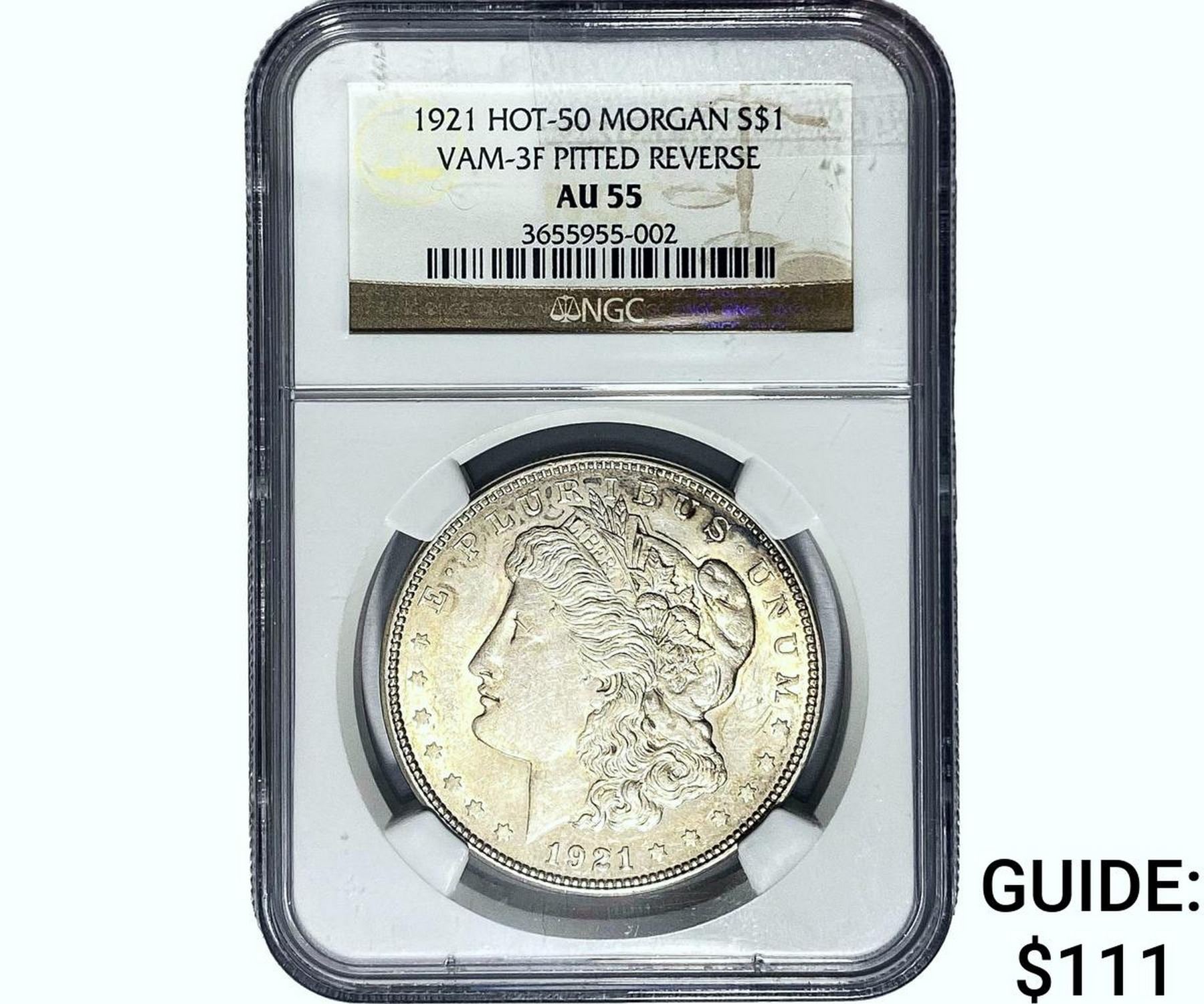 1921 Morgan Silver Dollar NGC AU55 VAM-3F Pit. Rev.