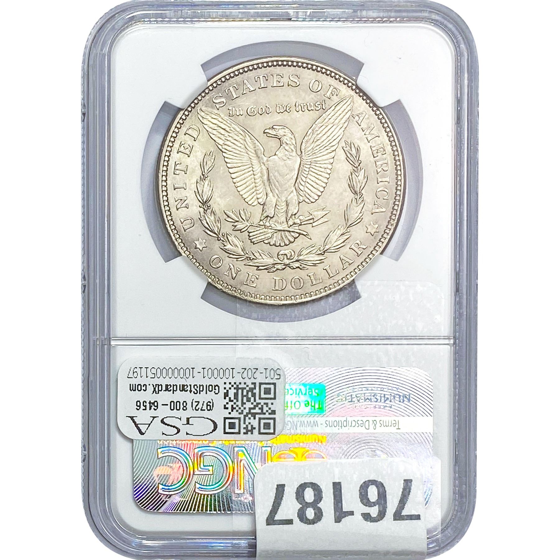 e. Coins sold referencing a third-party grading service are sold “AS IS” without any express or implied warranty, except for a guarantee by GSA that they are genuine. Removal or alteration of the holder, voids all of Bidder’s claims concerning that Product. Certain warranties may be available from the grading services and Bidders are referred to them for further details: Numismatic Guaranty Corporation (NGC), PO Box 4776, Sarasota, FL 34230, www.ngccoin.com/services/writtenguarantee.asp; Professional Coin Grading Services (PCGS), PO Box 9458, Newport Beach, CA 92658, www.pcgs.com/guarantee.html; ANACS, 6555 S. Kenton St., Ste. 303, Englewood, CO 80111; and Independent Coin Grading Co. (ICG), 7901 East Bellview, Ave., Suite 50, Englewood, CO 80111.