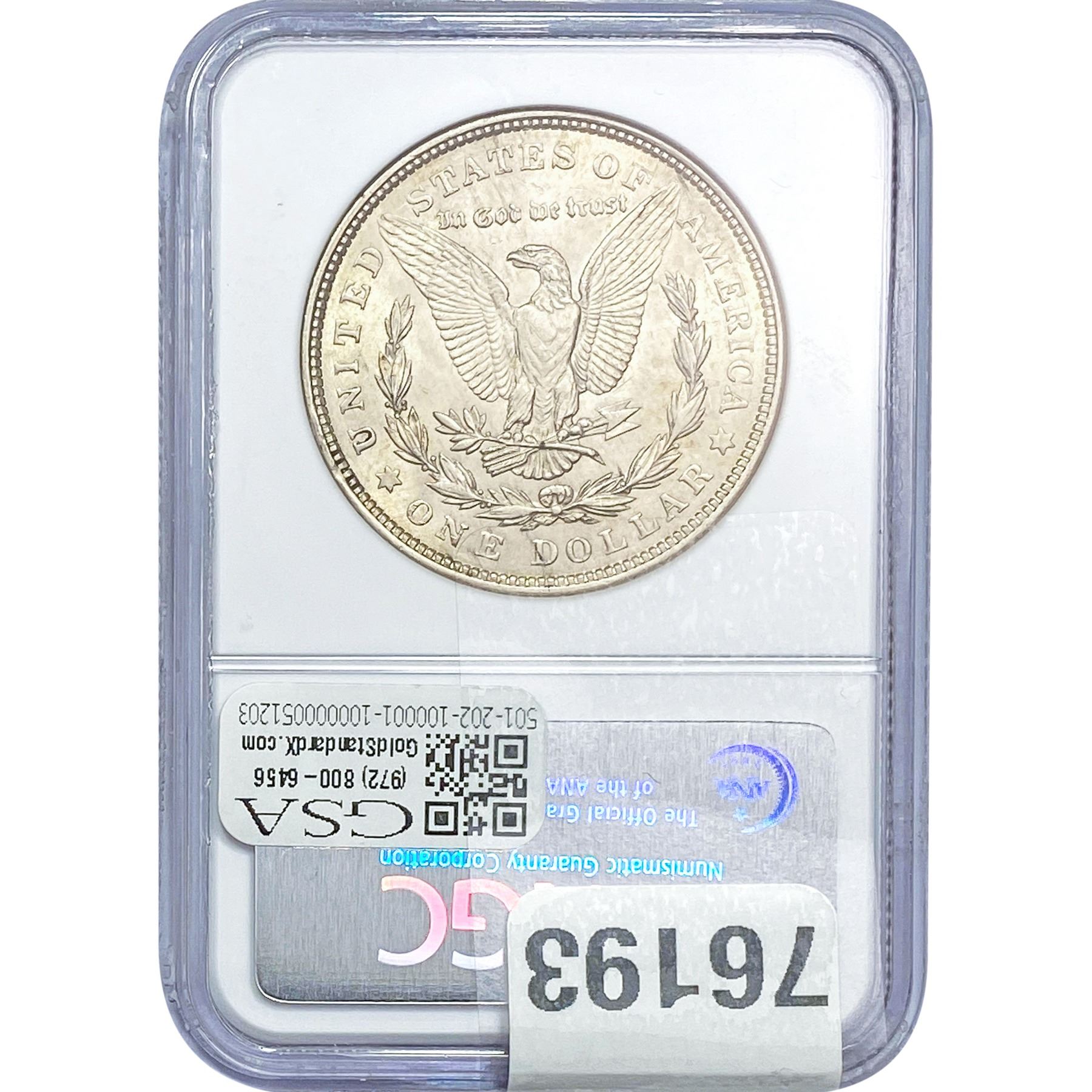 e. Coins sold referencing a third-party grading service are sold “AS IS” without any express or implied warranty, except for a guarantee by GSA that they are genuine. Removal or alteration of the holder, voids all of Bidder’s claims concerning that Product. Certain warranties may be available from the grading services and Bidders are referred to them for further details: Numismatic Guaranty Corporation (NGC), PO Box 4776, Sarasota, FL 34230, www.ngccoin.com/services/writtenguarantee.asp; Professional Coin Grading Services (PCGS), PO Box 9458, Newport Beach, CA 92658, www.pcgs.com/guarantee.html; ANACS, 6555 S. Kenton St., Ste. 303, Englewood, CO 80111; and Independent Coin Grading Co. (ICG), 7901 East Bellview, Ave., Suite 50, Englewood, CO 80111.