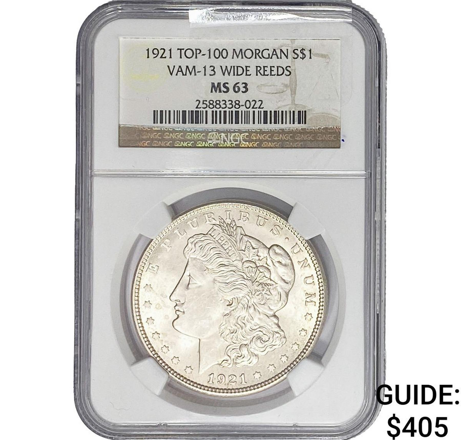1921 Morgan Silver Dollar NGC MS63 VAM13 Wide Reeds