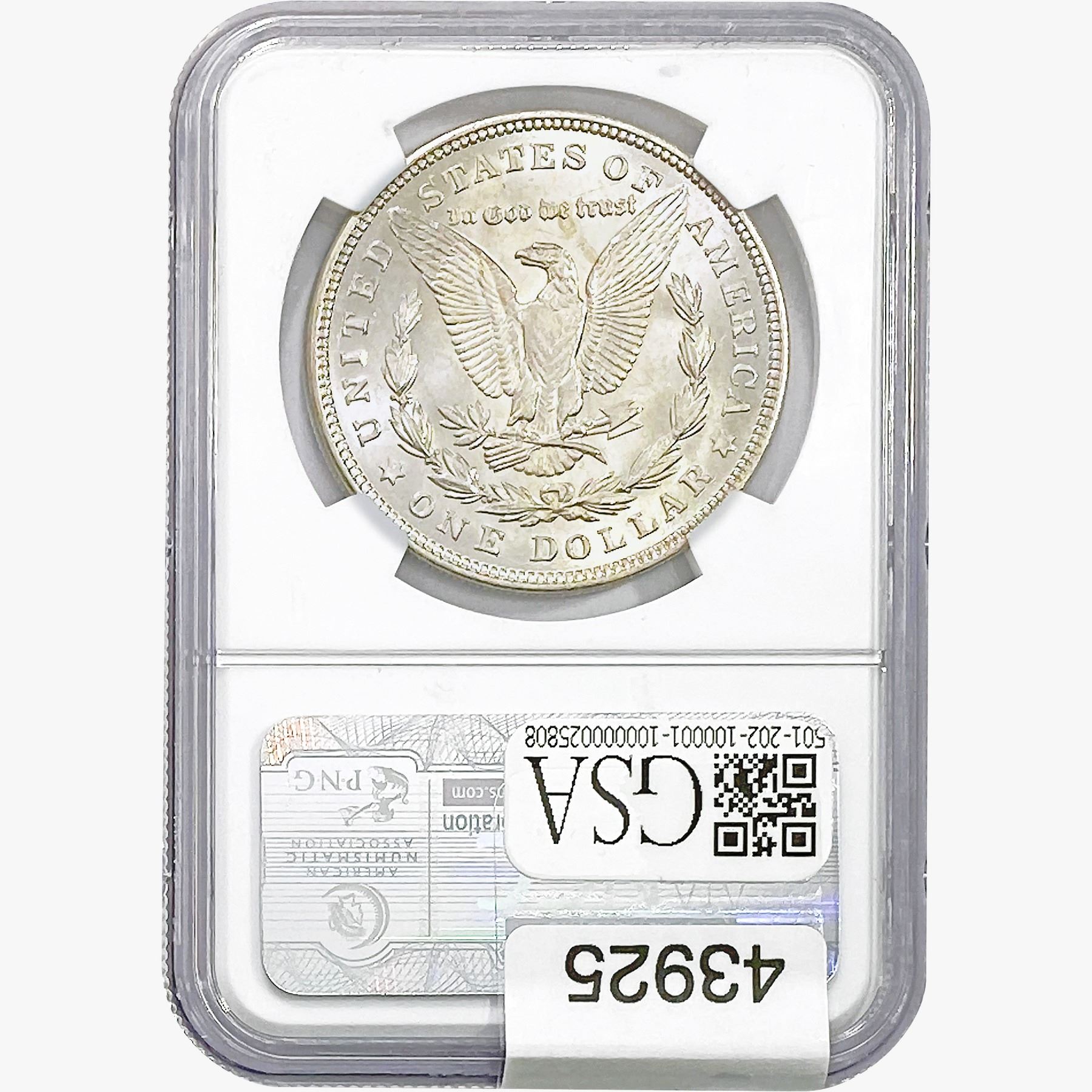 COINS AND CURRENCY LISTED IN GSA’S CATALOG AS GRADED AND ENCAPSULATED BY PCGS, NGC, ANACS, ICG, PCGS CURRENCY, PMG, PCGS BANKNOTE GRADING, CMC OR ANY OTHER THIRD-PARTY GRADING SERVICE ARE LIKEWISE SOLD “AS-IS” EXCEPT AS EXPRESSLY SET FORTH HEREIN. ALL THIRD-PARTY GRADING SERVICE GUARANTEES, INCLUDING AUTHENTICITY, ARE THE SOLE RESPONSIBILITY OF THE THIRD-PARTY GRADING SERVICE AND NOT WARRANTIES OR GUARANTEES OF GSA. BIDDERS SHOULD CONTACT THESE THIRD-PARTY GRADING SERVICES DIRECTLY WITH RESPECT TO ANY CLAIMS OR QUESTIONS THEY MAY HAVE CONCERNING THEIR GUARANTEES AND WARRANTIES. BIDDERS ACKNOWLEDGE AND AGREE THAT AUCTIONEER IS NOT BOUND BY OR LIABLE FOR ANY OPINION OR CERTIFICATION BY ANY THIRD-PARTY GRADING SERVICE. REMOVAL OF A PRODUCT FROM ITS PROTECTIVE CASING OR HOLDER OR ALTERATION OF ANY COIN HOLDER WAIVES ALL RIGHTS CONCERNING THE PRODUCT CONTAINED THEREIN.