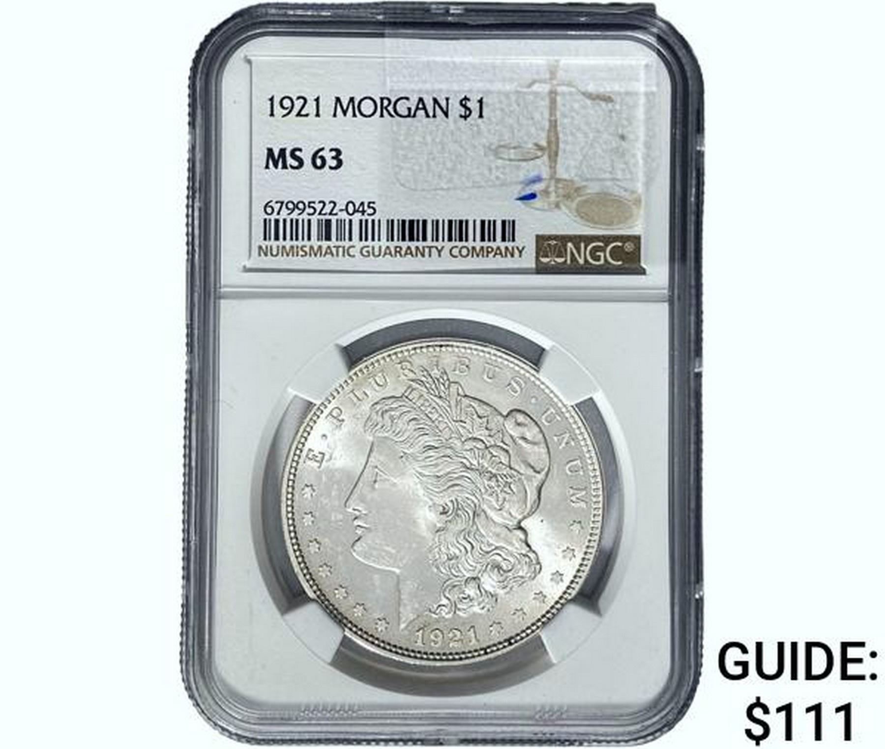 1921 Morgan Silver Dollar NGC MS63